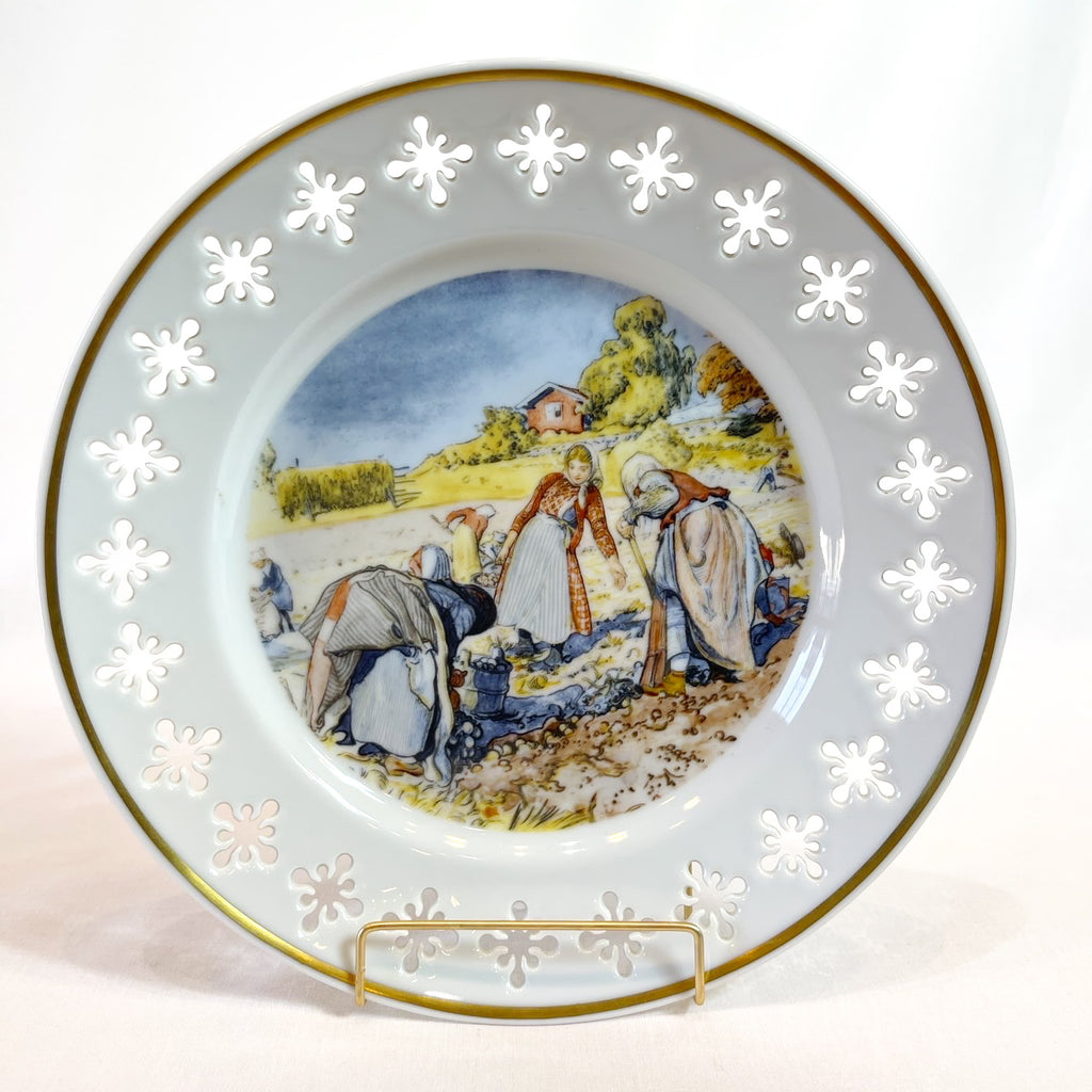 カール ラーション ヴィンテージ デコレーション プレート KARTOFFELOPTAGNING 「ジャガイモの収穫」 Φ21.5cm ビングオーグレンダール Bing&Grondahl スウェーデン デンマーク 壁掛け 飾り 皿 アート Carl Larsson