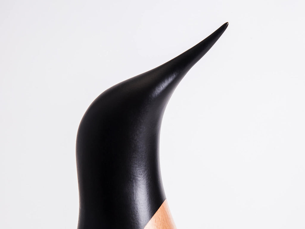 素材はビーチ材を使用し、黒く塗られた部分はペンギンの美しくなめらかな羽を表現しています。