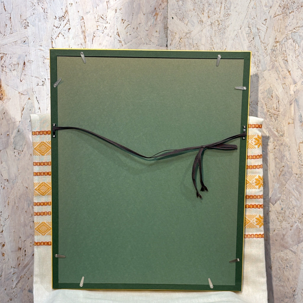 作品に合わせて仕立てた、職人によるハンドメイドの天然目の額縁・厚手のアクリルのオリジナルの本格的な額装でお届けいたします。