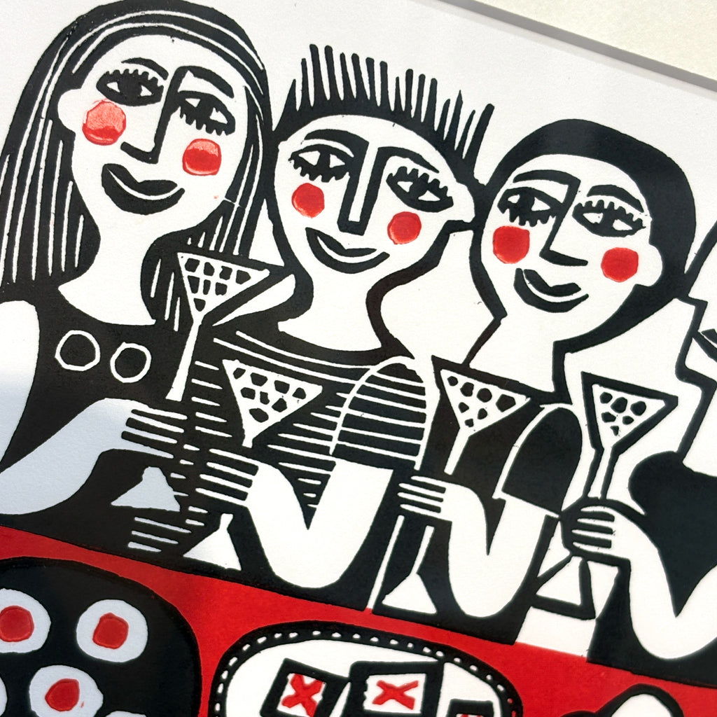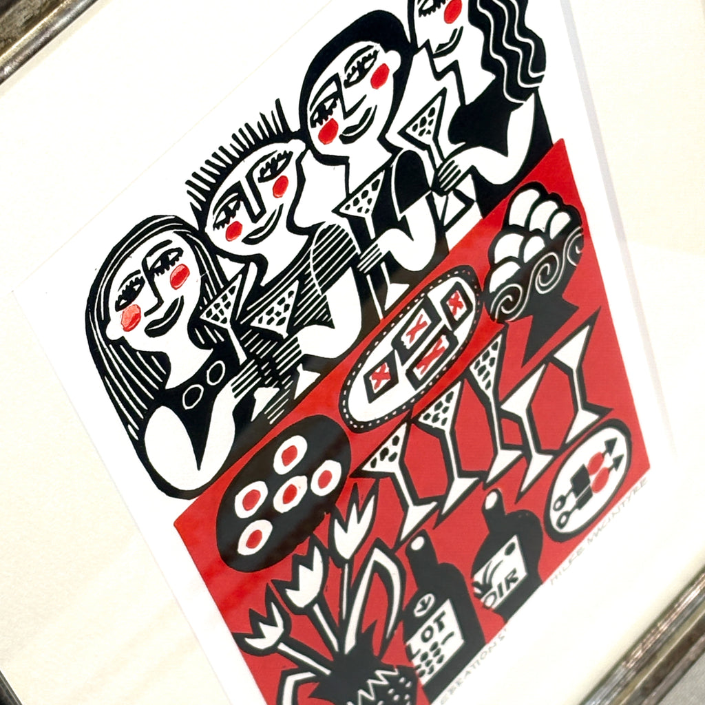 Celebrations リノカット アート Hilke Macintyre スコットランド アート アーティスト お祝い ヒルケマッキンタイヤ Scotland 【額送A】