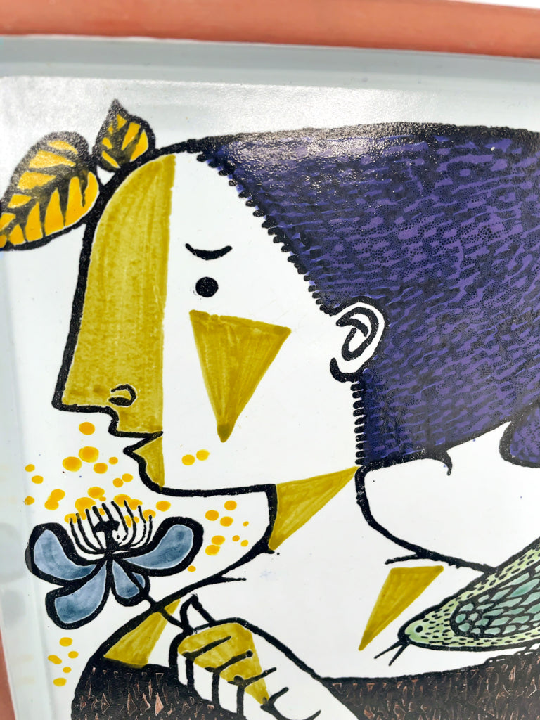 スウェーデンの巨匠スティグ・リンドベリによる「カーニバル」シリーズのアートプレートです。個性的で詩的な人物像が、ハンドペイントならではの鮮やかな筆致で描かれており、裏面にはその証であるサインが残されています。