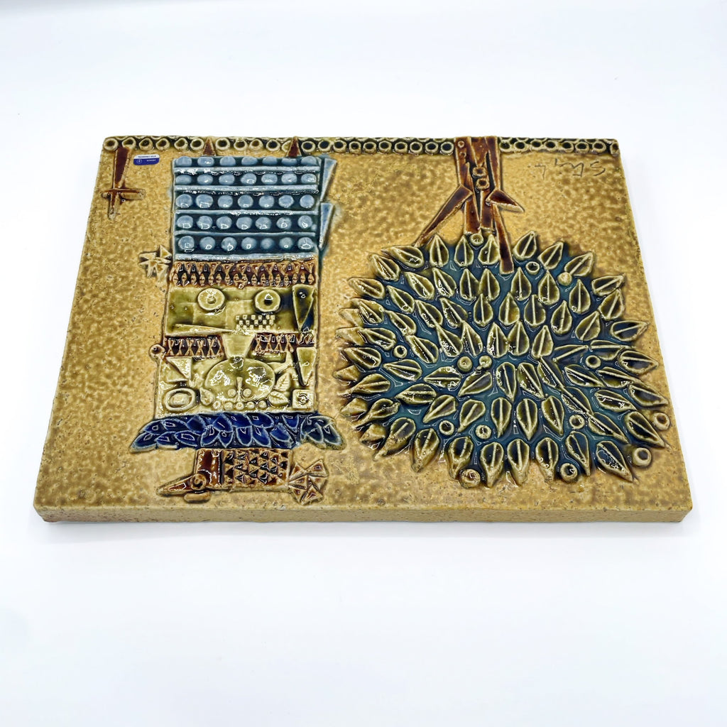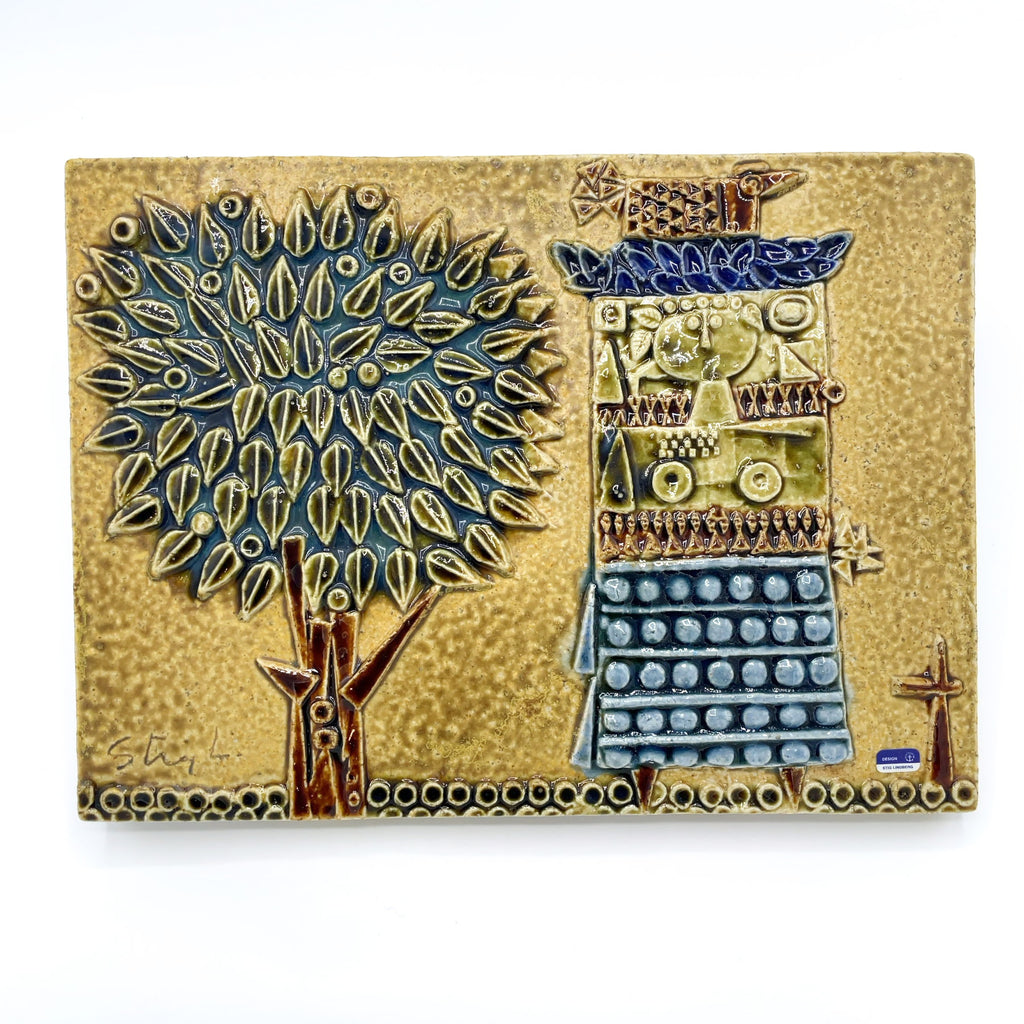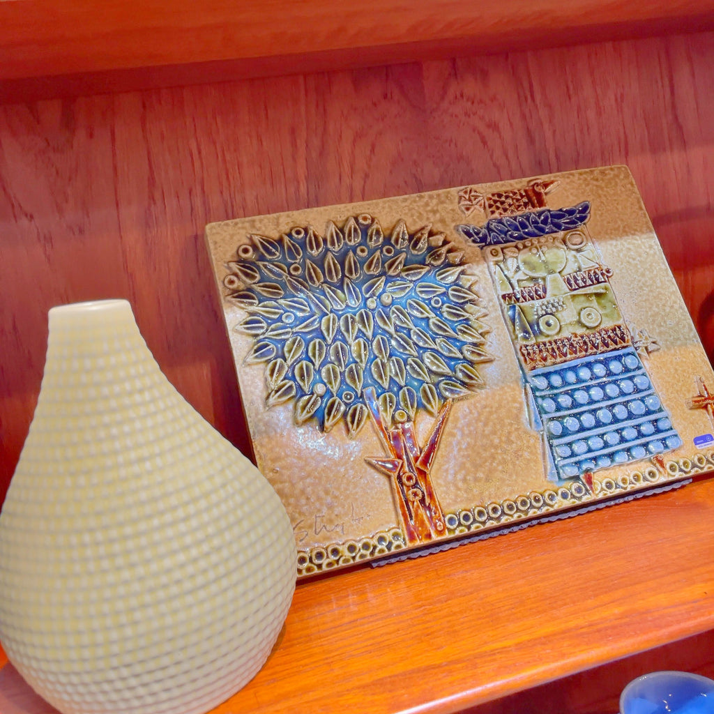 こちらは、スウェーデンを代表するデザイナー、スティグ・リンドベリによる貴重な陶板作品です。グスタフスベリ社で勤続25年を迎えた社員への記念品として贈られた非売品で、一般には流通していない希少な一枚です。