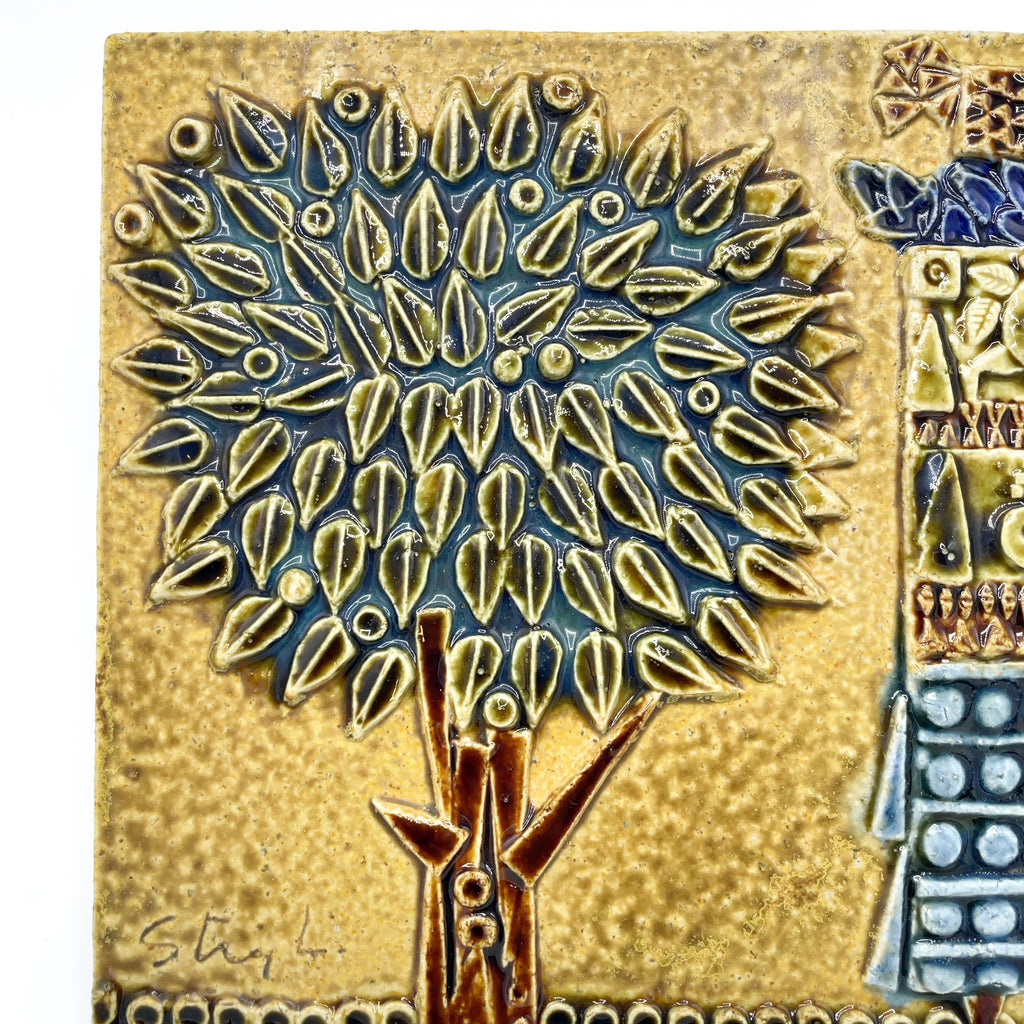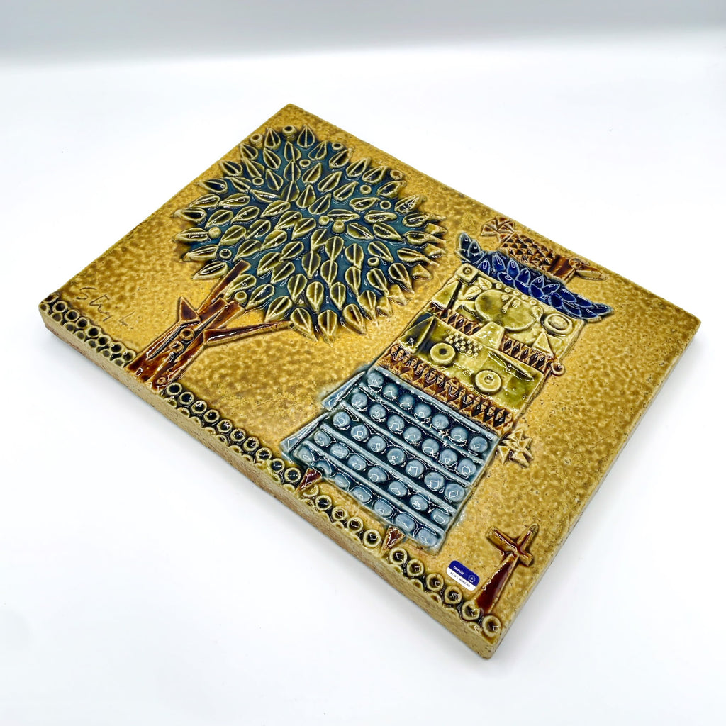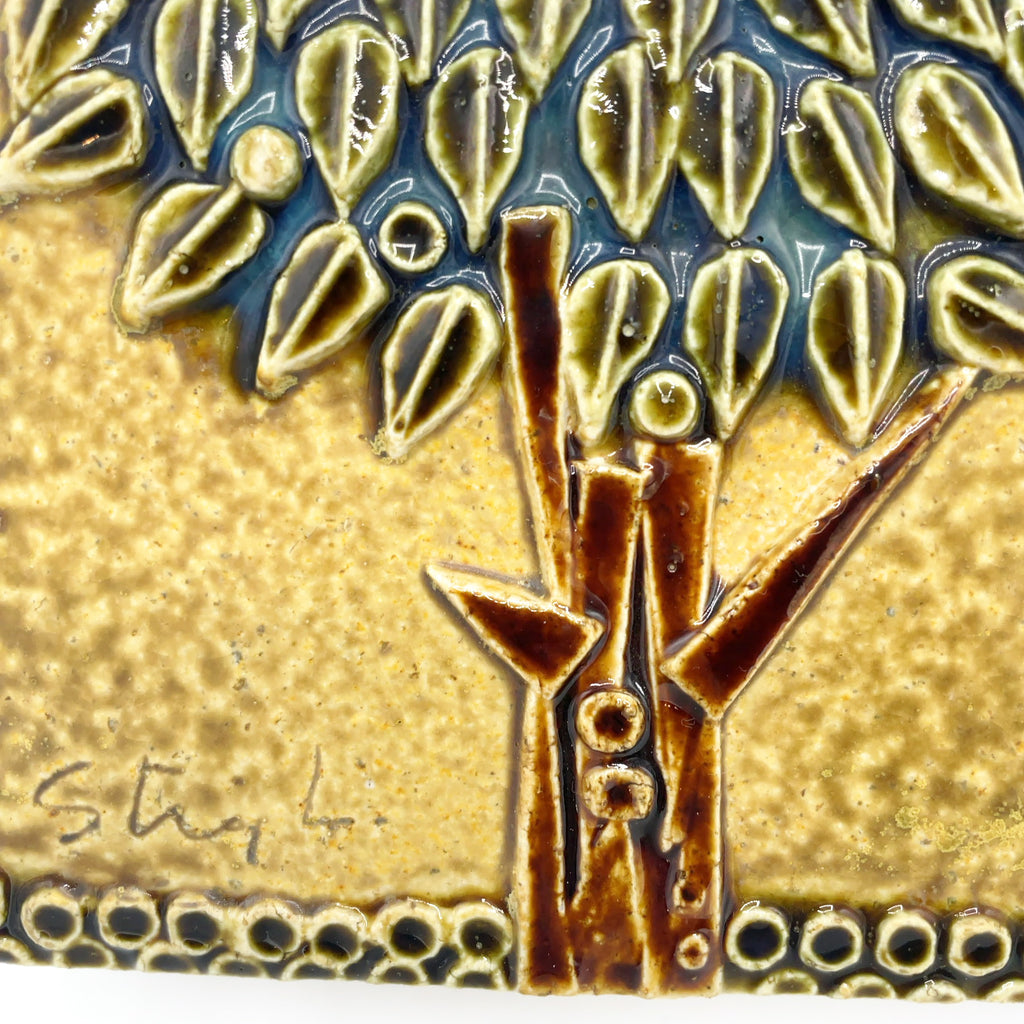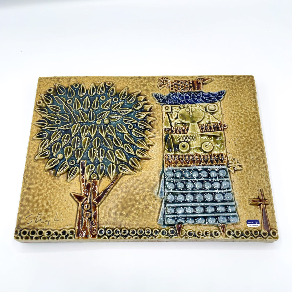 こちらは、スウェーデンを代表するデザイナー、スティグ・リンドベリによる貴重な陶板作品です。グスタフスベリ社で勤続25年を迎えた社員への記念品として贈られた非売品で、一般には流通していない希少な一枚です。